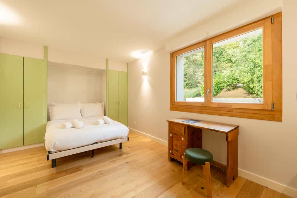 La villa dispose de deux suites en rez-de-jardin, de trois chambres doubles et d’un dortoir garantissant confort et intimité à chacun. Son entrée privée facilite le stationnement, permettant ainsi d’accéder facilement au cœur d’Annecy, à seulement quelques minutes. Surnommée la « Venise des Alpes », Annecy séduit par son charme pittoresque, ses canaux, son centre historique animé et ses nombreuses activités, qu’il s’agisse de balades au bord du lac, de randonnées en montagne ou de sports nautiques.